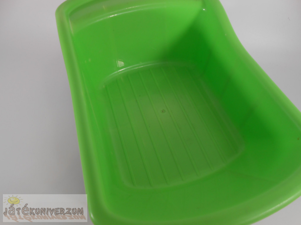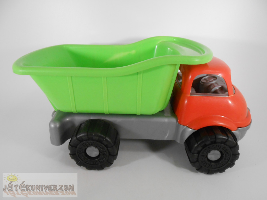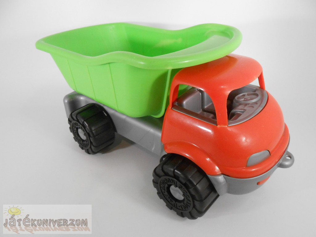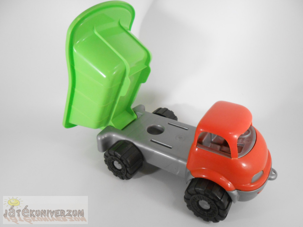 Általános állapota jó, a használatból adódó kisebb karcok és kopások vannak rajta. Ideális homokozóba, kertbe vagy gyerekszobába. A platója felemelhető a könnyű rakodás és ürítés érdekében.