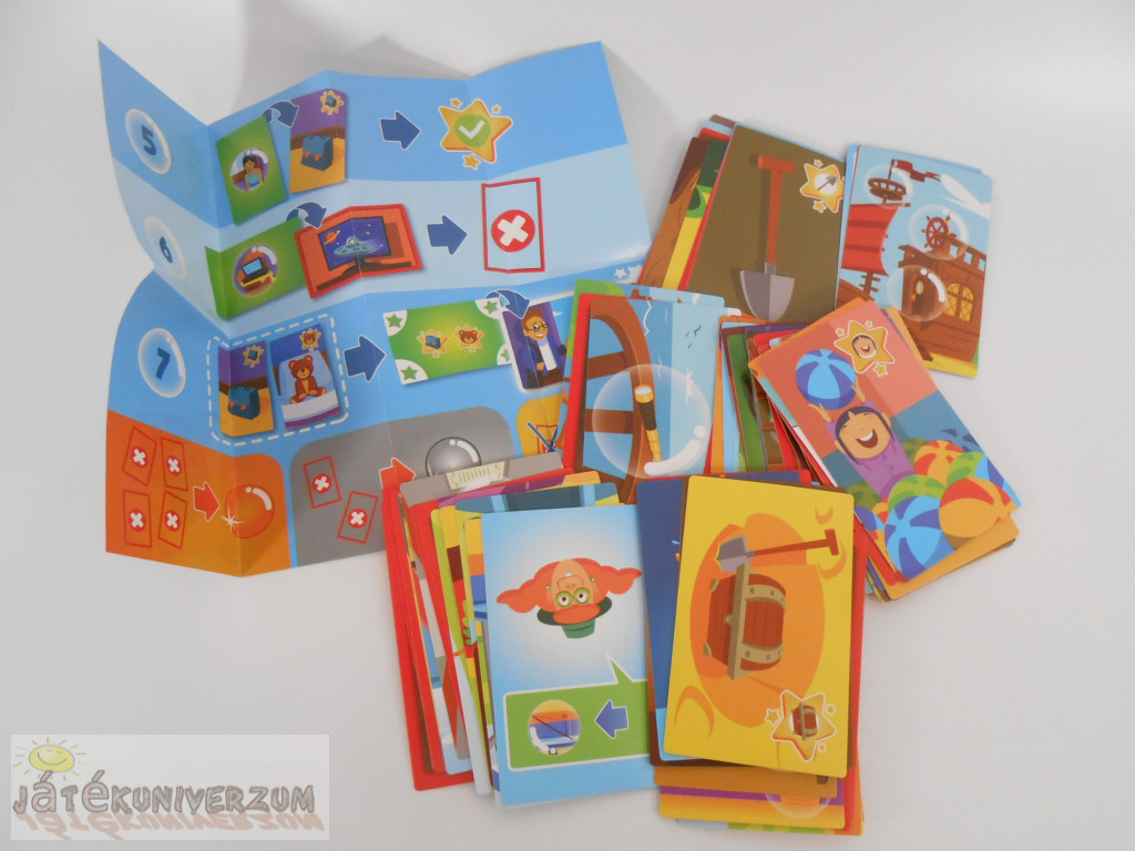 A doboza nyomott, tartalma jó állapotú. Magyar leírás nincs hozzá. Színes, szöveg nélküli "escape" (menekülős) játék gyerekeknek. 1-2 játékos játszhatja. 4 éves kortól ajánlott. Három különböző kalandot kínál, többek között iskolát, vásárteret vagy kalózszigetet.