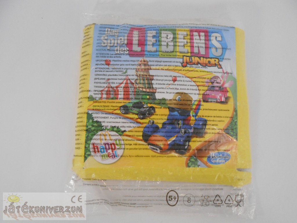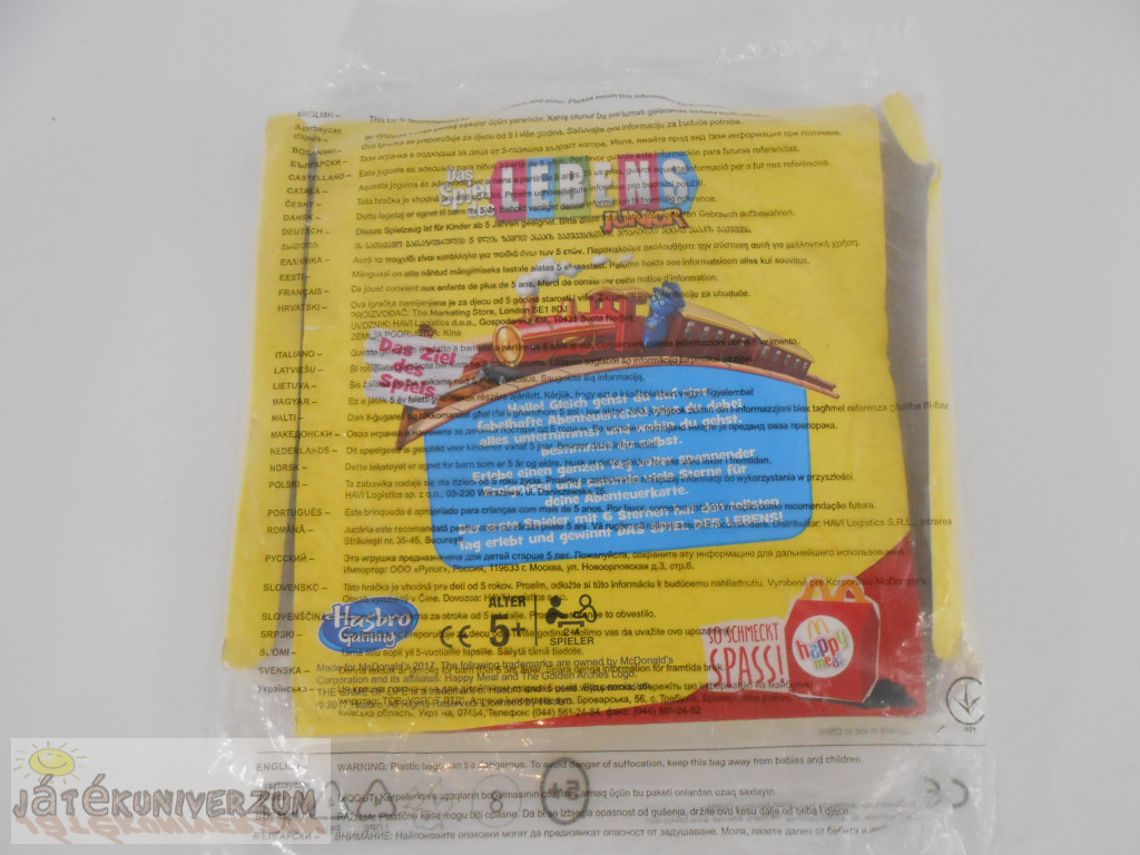 Bontatlan, de sérült benne a papírdoboz. McDonald's Hasbro játék. Német nyelvű. 2-4 játékosok számára. 5 éves kortól.