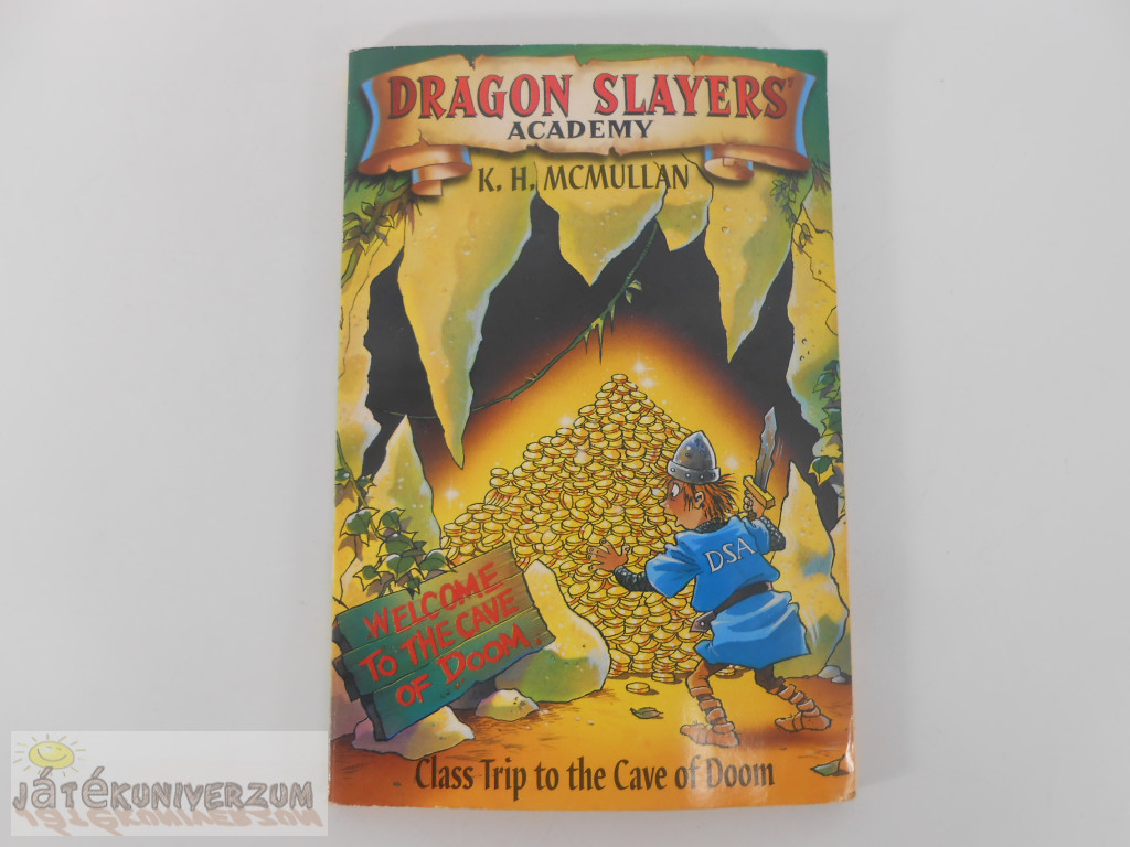 Külső borítója picit karcos, nyomott, ezen kívül jó állapotú. Angol nyelvű. Sárkányölők Akadémiája: Osztálykirándulás a Végzet Barlangjába című gyermekkönyv sorozat 3. kötete. A főszereplő, Wiglaf, osztálytársaival a Végzet Barlangjába utazik, hogy megkeressék egy elpusztult sárkány kincsét.