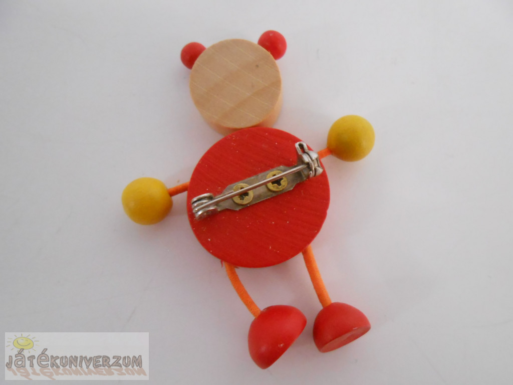 Fából készült. A kitűző része biztonsági záras. Picit kopott.