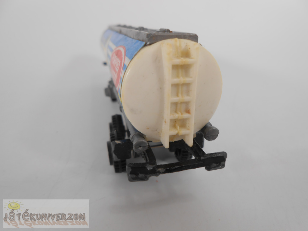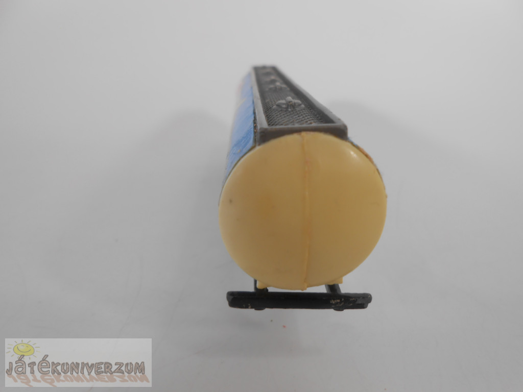 Állapota erősen használt, jól látható nyomokkal, a felületén több helyen kopások, az egyik oldalán lévő szürke része sérült, hiányzik. Anyaga a tartály része műanyag, alsó része fém.