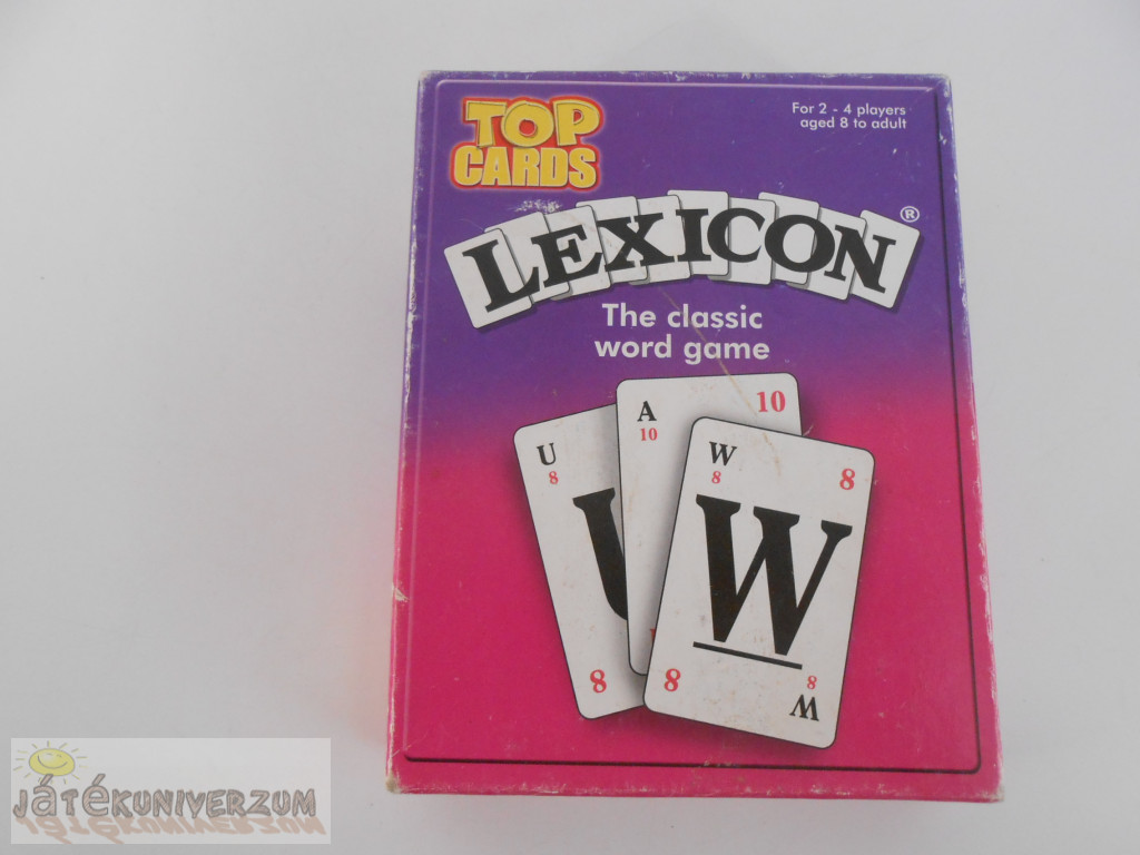 Általános állapota jó, a használatból adódó kisebb kopások, gyűrődések vannak rajta. 8 éves kortól. 2-4 játékosok részére. Angol ábcét tartalmaz. Magyar leírás nincs hozzá. A Lexicon egy klasszikus szóképző kártyajáték, ami kicsit a Scrabble-hez hasonlít, csak itt kártyákkal játszható. Minél több és hosszabb értelmes szót kirakni a kezedben lévő betűkártyákból, és ezzel pontokat gyűjteni.