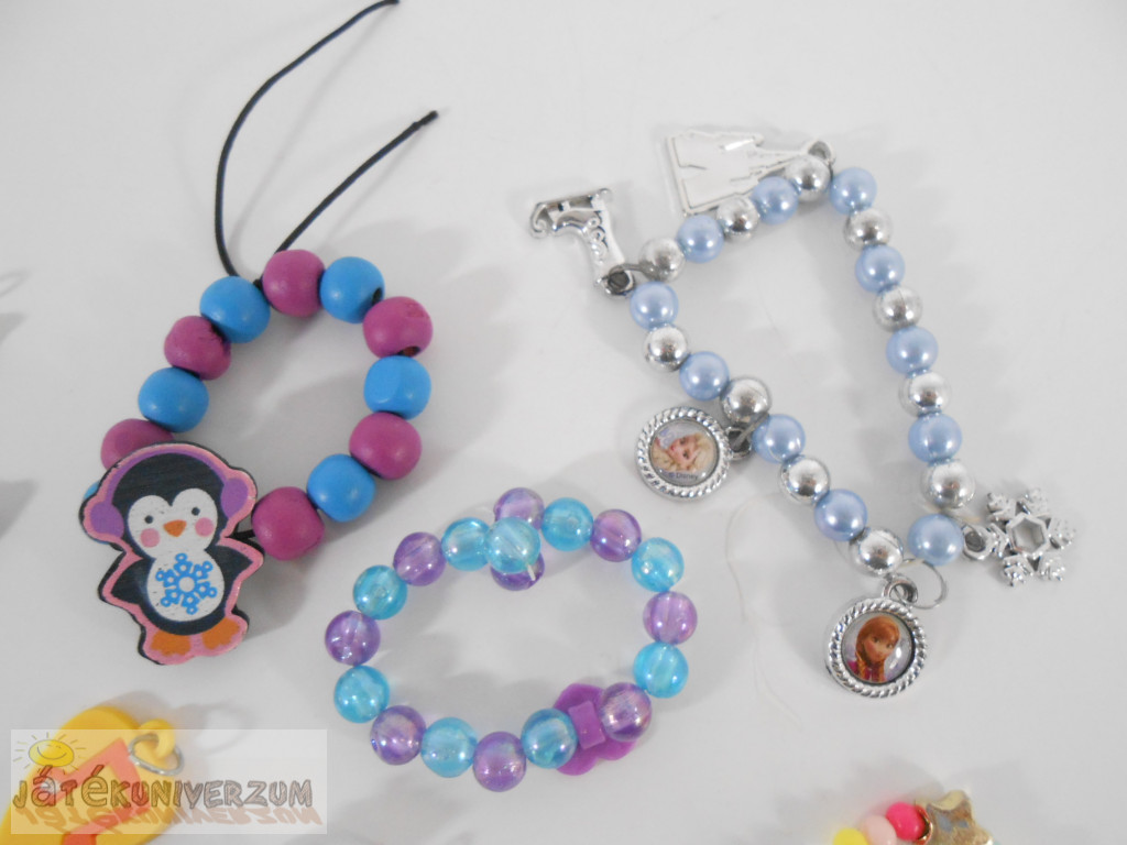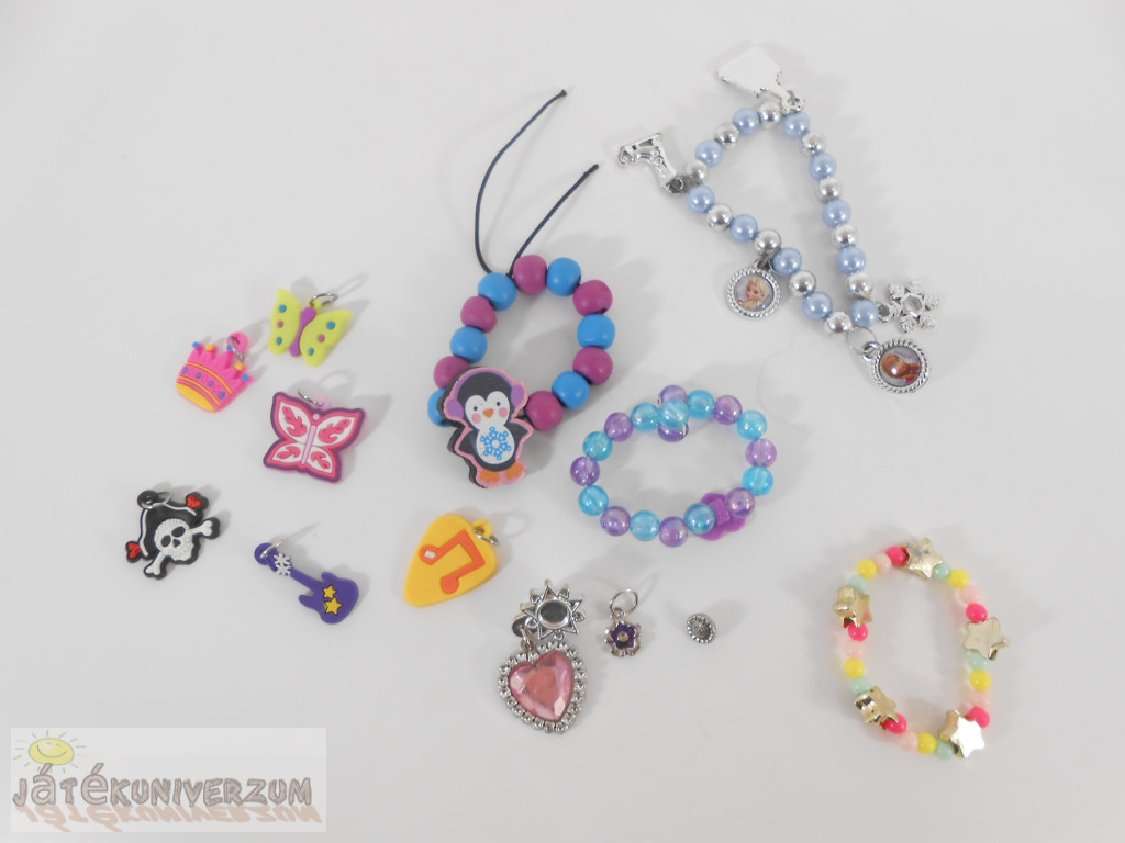 4 darab karkötő. 7 darab kiegészítő. 1 darab klipsz fülbevaló, párja nincsen.