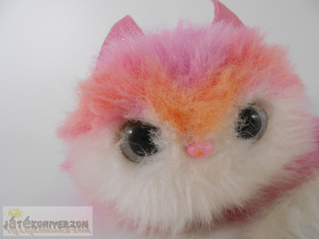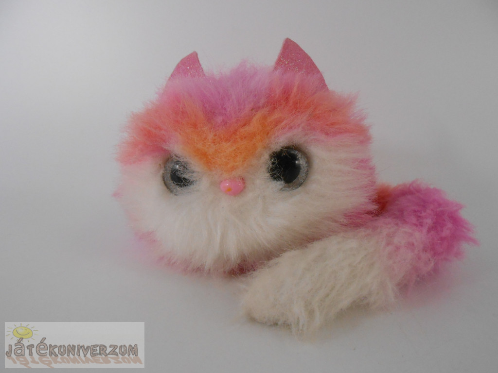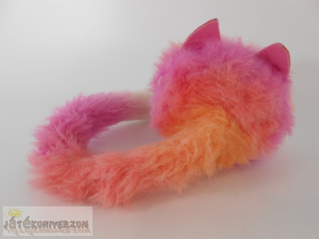 Szeme karcos, ezen kívül jó állapotú. Az orrát megnyomva, érintésre és egyes hangokra reagál. Az orrát hosszabban megnyomva parti zenét játszik le. Rezegve dorombol, változtatja a szeme színét, és több, mint 20 különféle édes cicahangot hallat. A gyerekek rátehetik a táskájukra, de viselhetik a csuklójukon is, hiszen a cicus farka rátekeredik a kis kezekre. Sőt, a legügyesebbek akár a frizurájukba is belecsempészhetik. 1 darab AAA elemmel működik. Plusz költségért elemmel is kérheted. Fésű nincs hozzá.
