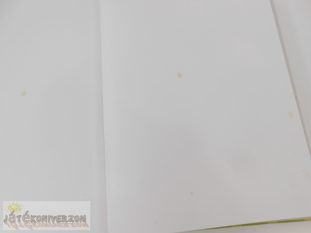 Az elején sérült. A könyv pár helyen foltos. Egy helyen halványan firkás.