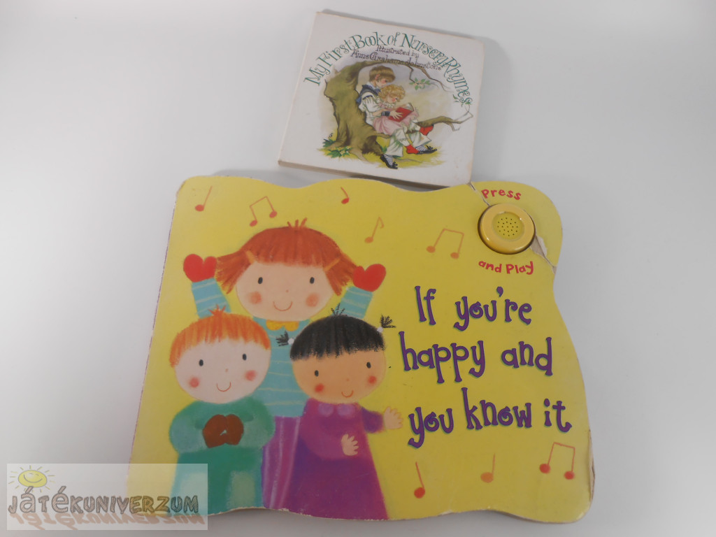 2 darabos. Angol nyelvű. Kemény lapos. A nagyobb képeskönyv elemes, de nem működik, mert az elem bele van építve a könyvbe. Külső borítása sérült, a belseje jó állapotú. A kisebb könyv külső borítása nyomott, karcos, a belseje jó állapotú.