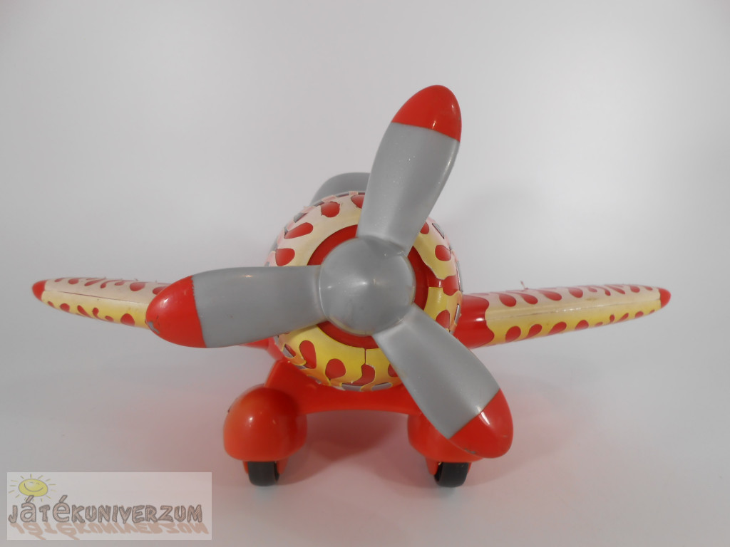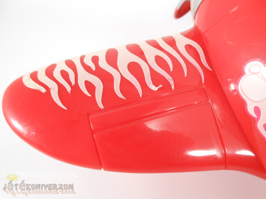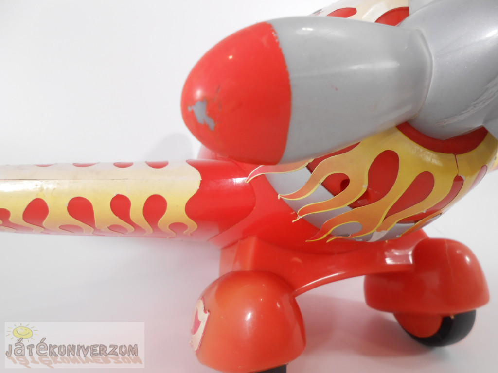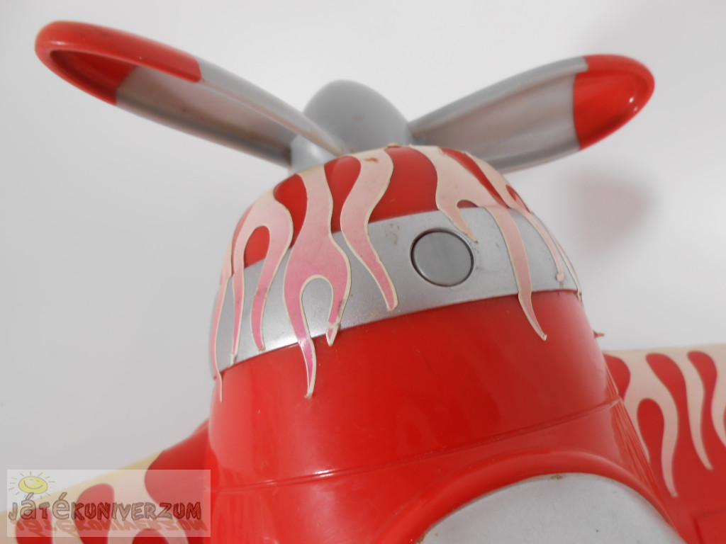 Használtabb. Angol nyelven beszél. Repülő hangot ad ki magából. A matricája kicsit hiányos. Festése kopottas, el van szíveződve. 2 darab AAA elemmel működik. Plusz költségért elemmel is kérheted.